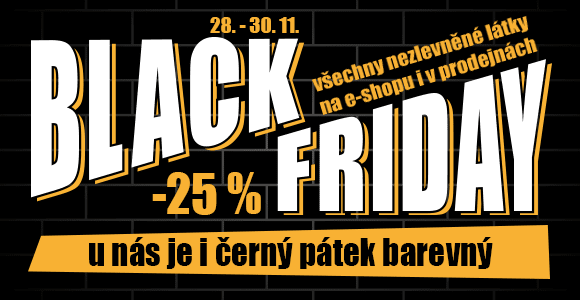 Black Friday je tady a opravdu stojí za to! Pouze do konce listopadu získáte slevu 25 % na všechny nezlevněné látky. 💥