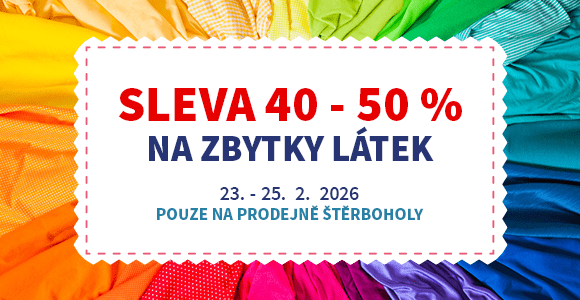Akce platí pouze na prodejně Štěrboholy od 23. 2. do 25. 2., tak si nenechte ujít příležitost nakoupit látky za ceny, které se jen tak nevidí. 😉